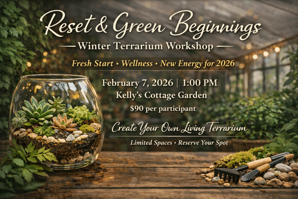 Ready for a fresh start? Join us for the Winter Terrarium Workshop at Kelly’s Cottage Garden and cultivate wellness and creativity in 2026.